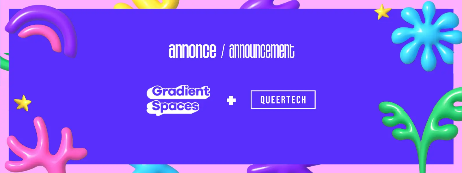 Montreal, Quebec. Monday, February 26, 2024 - Today, QueerTech - a leading nonprofit organization that helps members of the 2SLGBTQ+ community access and grow within the tech and innovation workforce - announced the strategic acquisition of Gradient Spaces, a Toronto-based nonprofit accelerator for 2SLGBTQ+ startup founders in Canada. Since launching in 2016, QueerTech has empowered more than 10,000 2SLGBTQ+ professionals by fostering entrepreneurship, professional development, and mentorship in the tech industry.