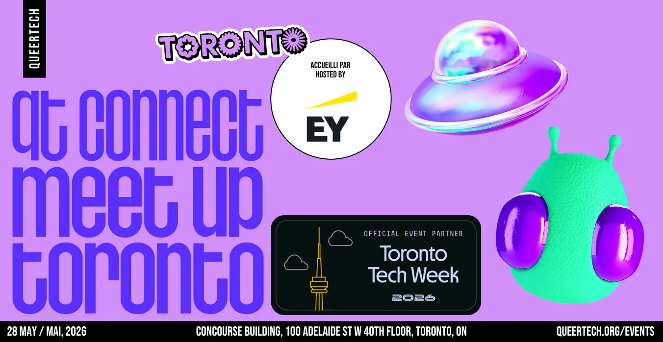 Rejoignez-nous pour le QTConnect Meetup à Toronto, accueilli par EY - un événement dynamique, en personne, conçu pour favoriser la connexion, le développement de carrière et la création d'une communauté parmi les professionnel.le.s de la technologie 2SLGBTQIA+ et leurs allié.e.s.
