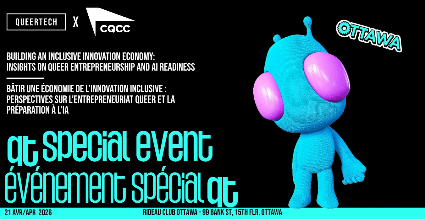 QueerTech, en partenariat avec la Chambre de commerce queer du Canada, organisera un petit-déjeuner sur invitation seulement à Ottawa, réunissant des entrepreneur·e·s, des partenaires de l’écosystème, des représentant·e·s gouvernementaux·ales et des membres du gouvernement du Canada pour une séance de réseautage, des allocutions et une discussion de panel dynamique à ne pas manquer.
