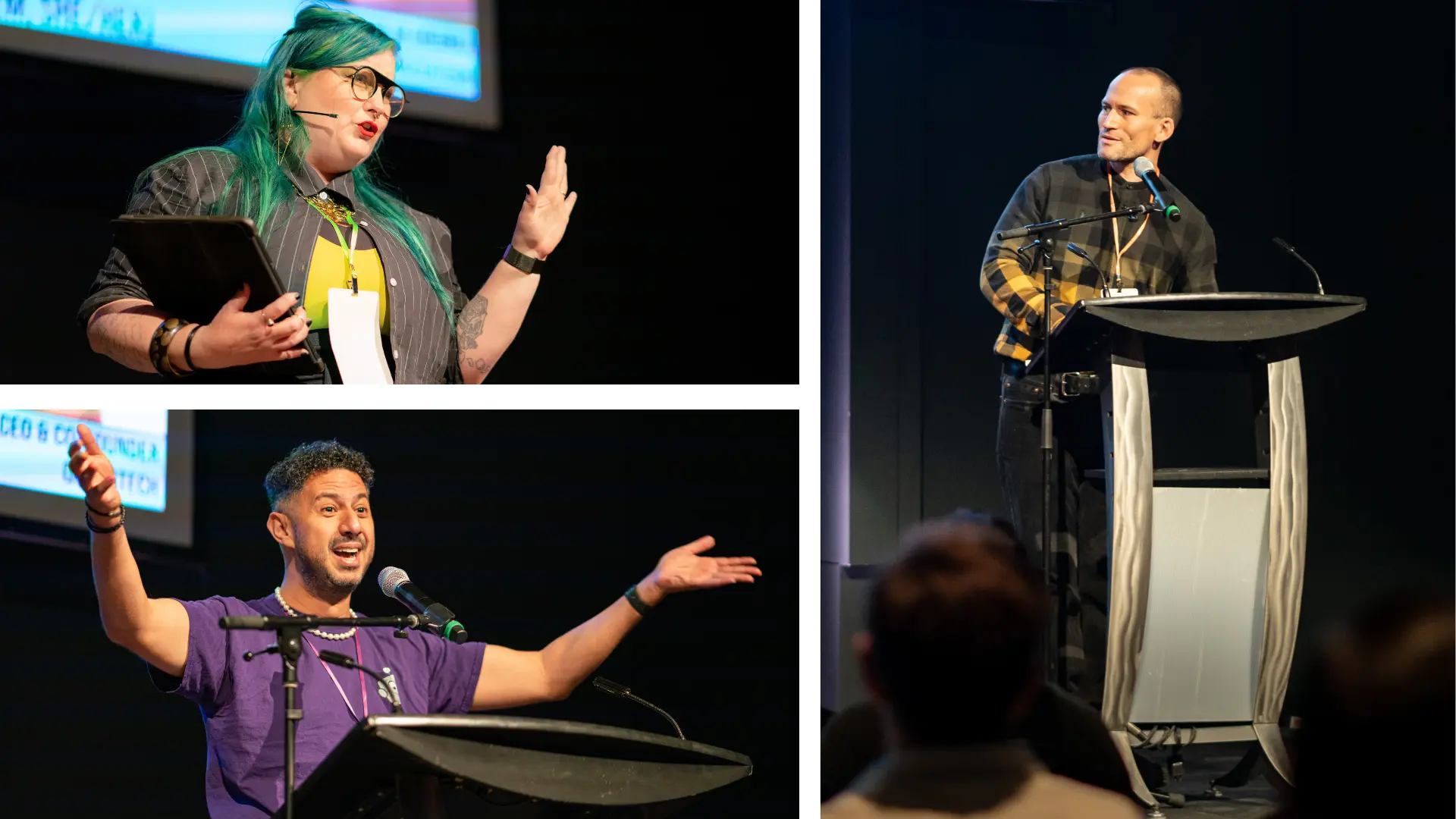 À l'issue des sessions de contenu de la journée, les participants se sont rassemblés autour de la scène principale pour assister à Queering the Tech Ecosystem : Un enregistrement en direct du podcast "The Business Gay", animé par Calan Breckon. Pour cette session, Calan s'est entretenu avec les cofondateurs de QueerTech, Eustacio Andy Saldaña et Naoufel Testaouni, pour discuter de la création de QueerTech, des défis et des succès qu'ils ont rencontrés en cours de route, et des réflexions sur la création d'une communauté prospère à l'intersection de la défense des droits des personnes 2SLGBTQ+ et de l'innovation technologique.